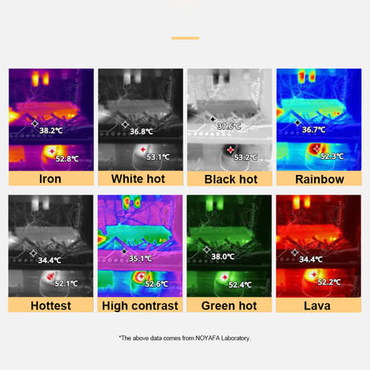 · Palette di colori: 8 (Iron Red, Rainbow, Red Hot, Black Hot, White Hot, High Contrast, Green Hot, Lava)