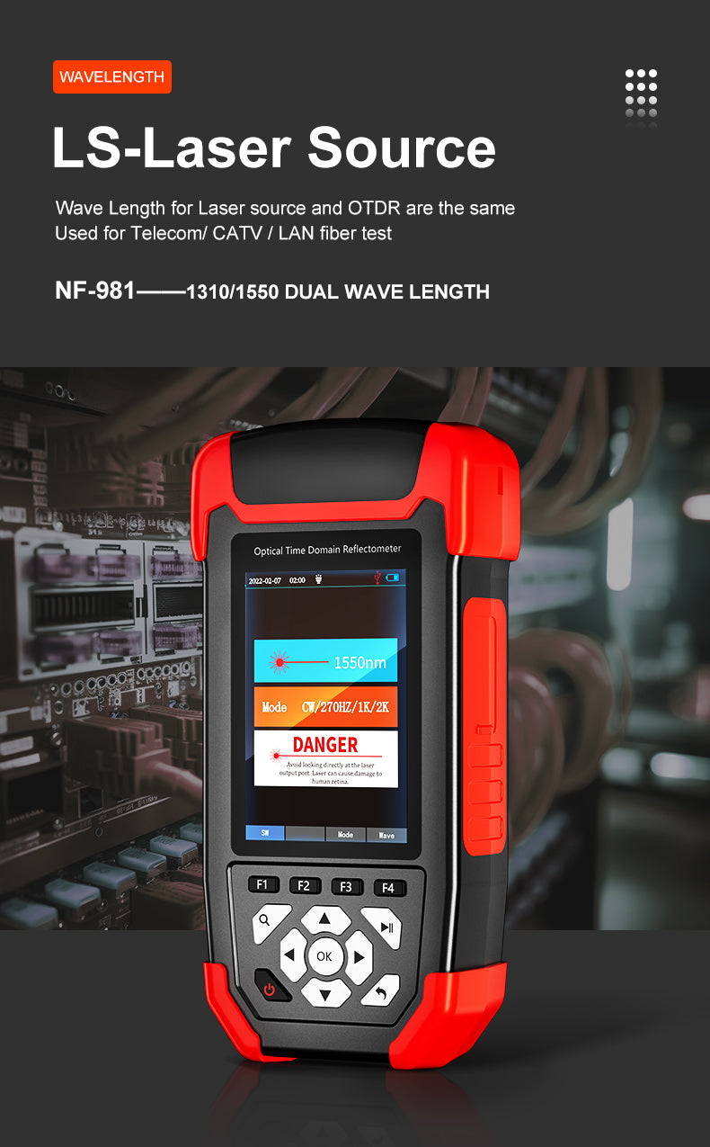 DDK-NF3006 è uno strumento multifunzione progettato per il test, la misurazione e la diagnostica di reti in fibra ottica. Combina OTDR, misuratore di potenza ottica, sorgente luminosa, localizzatore visivo di guasti e test LAN, il tutto in un formato compatto e portatile, ideale per installatori e tecnici di rete. Si presta per le attività di analisi e risoluzioni problemi su fibra monomodale e multimodale ( usando 1310nm).
