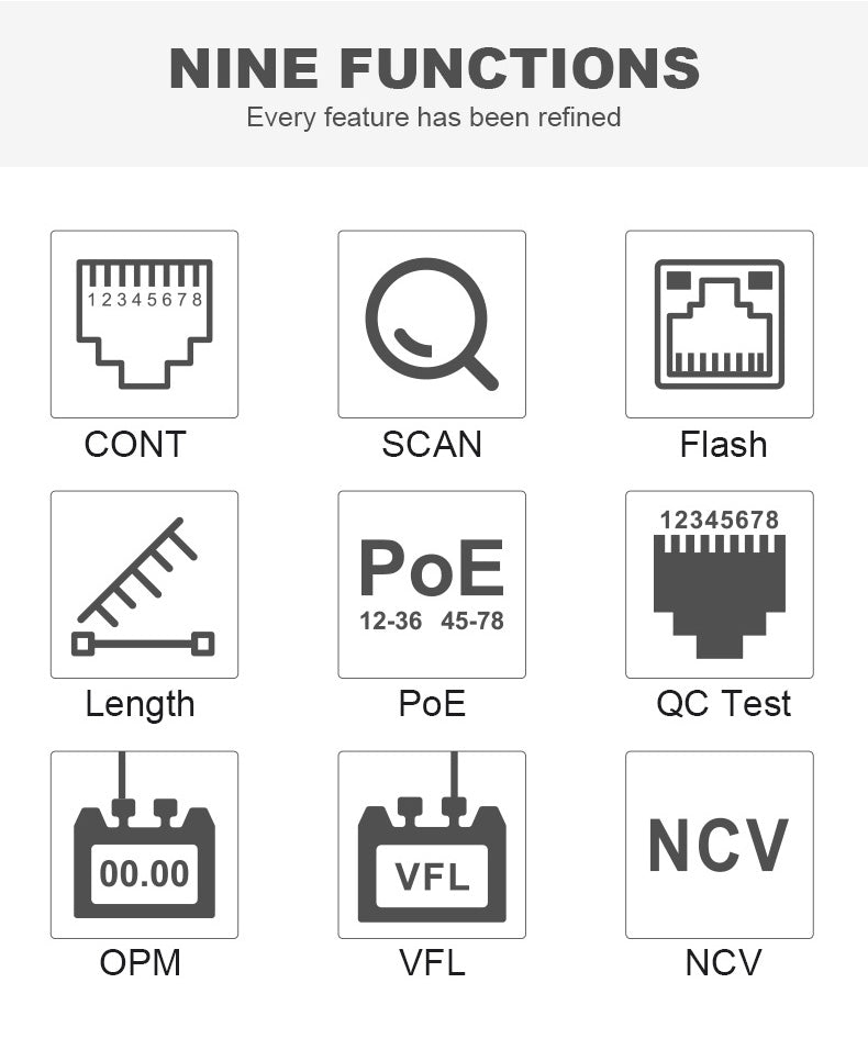 Tester di cavi di rete multifunzione DDK-NF10533 9 in 1 con mappatura dei cavi, cercacoppie, Power Meter OPM, Visual Faul Locator VFL ( laser) per manutenzione e ricerca guasti della rete in fibra ottica ed Ethernet